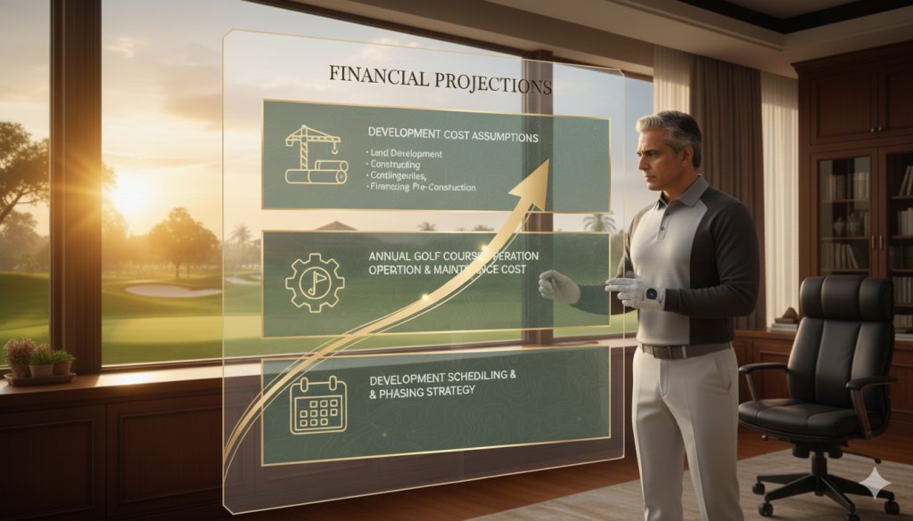 - Financial analysis for the Golf course construction and operating expenses for first 3 years.